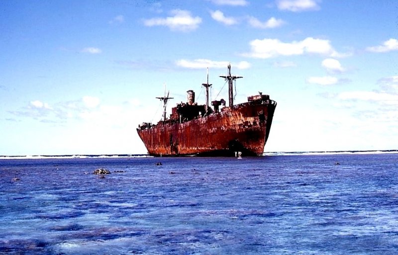 En 1945 el barco fue arrazado por un ciclón en el medio del Mar del Coral y la marea lo llevo a que encalle en el Arrecife Saumarez.